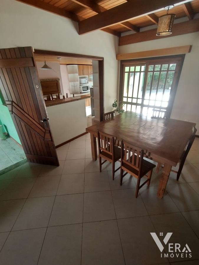 Casa de alvenaria com 2 dormitórios, sendo 1 suíte, e sala de estar/jantar conjugada espaçosa, perfeita para o seu conforto. A cozinha, com acabamento em granito, conta com churrasqueira e fogão campeiro, ideal para momentos de convivência. Com móveis planejados, aberturas em louro-freijo e excelente acabamento, a residência oferece um mesanino em madeira de lei, lavanderia, varandas frontal e fundos, garagem e jardins bem cuidados com cerca eletrônica.