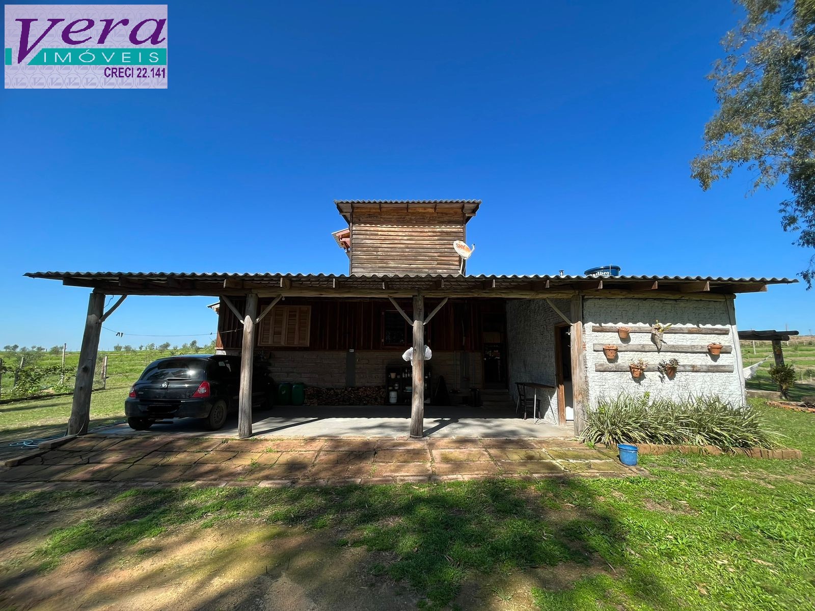 Sobre as benfeitorias da propriedade: A casa possui 200m² com 3 quartos com cama de casal, 1 banheiro bem amplo, sala e cozinha compartilhadas. Possui para aquecimento um calefator grande na sala e fogão à lenha na cozinha, que por sua vez está mobiliada. Há também um aquecedor de água para banheiro o que substitui o chuveiro elétrico, apesar de já estar instalado e ter pressurizador de água. Todas as aberturas da casa são novas com 1,5m e pintadas recentemente. Possui uma peça anexa a casa nos fundos para guarda de ferramentas, assim como estacionamento coberto para 3 carros. Também ainda no pátio da sede, há 1 galpão para guarda de trator e demais equipamentos de aproximadamente 80m2, 1 horta para consumo da família irrigada por gotejamento e um galinheiro. A propriedade possui poço artesiano autorizado pela SEMA e com análise de água adequada. Tem instalado postes novos em 2020 para disponibilizar energia elétrica as instalações (dificilmente falta luz) e possui internet via rápido de ótima qualidade. A casa fica a 400m da entrada da propriedade, o que gera maior segurança e privacidade à família. O pátio da casa é todo cercado com telas e 2 porteiras e 1 portão pequeno para acesso ao açude. Possuindo jardim planejado com fonte de água, diversas espécies de flores ornamentais, inclusive com uma oliveira de 20 anos cercada por pedras da região com viés ornamental e produtivo, em breve.
