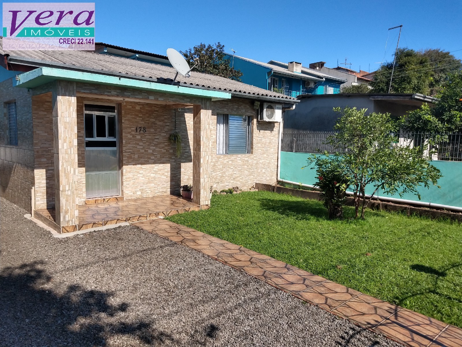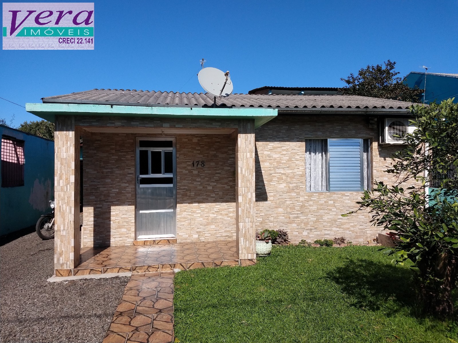 Imóvel de 02 dormitórios, sala de estar, sala de jjantar, banheiro social, área de serviço aos fundos, amplo pátio frontal,