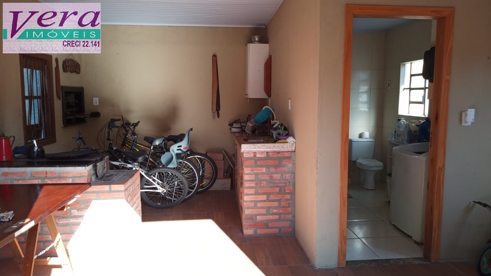 Anexo com lavanderia/banheiro, fogão de campanha e churrasqueira.