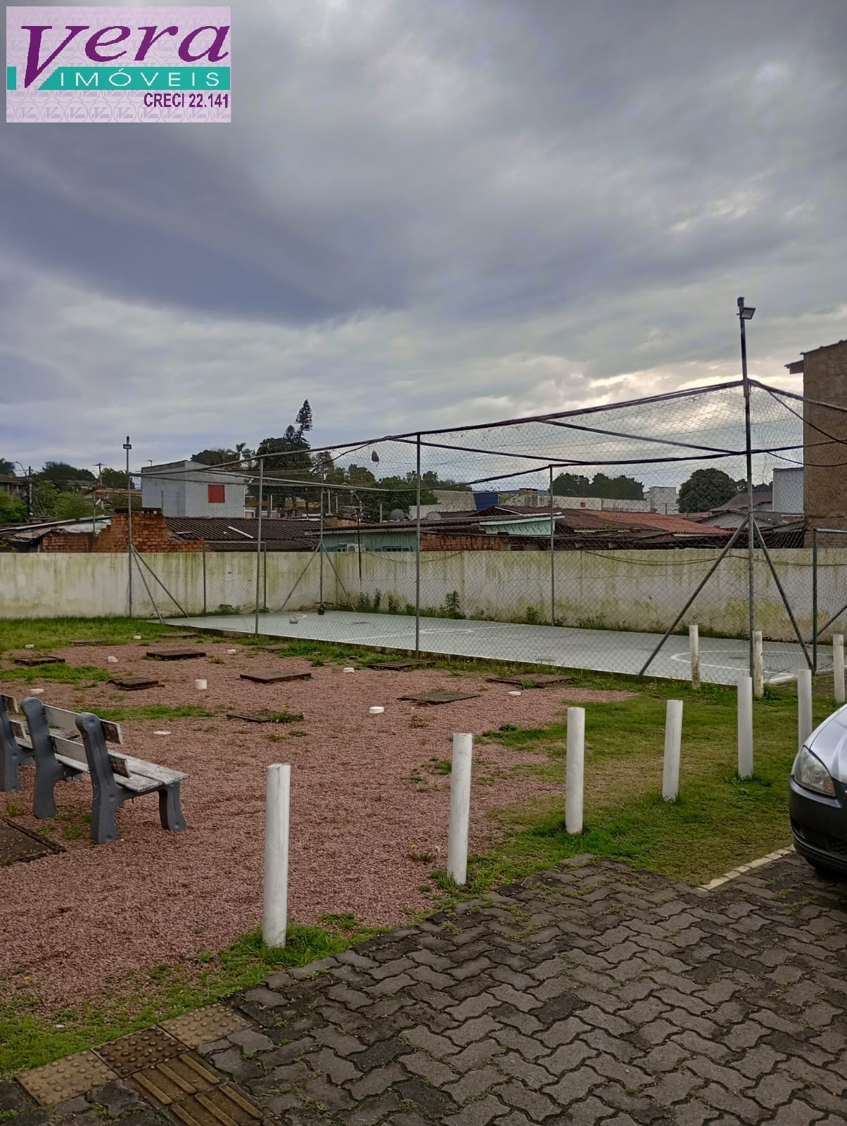 Condomínio com salão de festas, pracinha e quadra esportiva